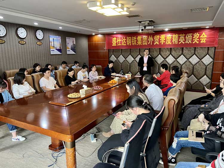 在秋分送爽、碩果累累的季節(jié),2021年度秋季“盛仕達鋼鐵集團外貿(mào)季度精英”頒獎會在公司總部及武漢分公司分別成功召開。此次頒獎會的意義所在:1、體現(xiàn)出公司對一段時間以來,大家為公司付出努力的肯定;2、是一次次成功的實戰(zhàn)經(jīng)驗的分享學(xué)習(xí)平臺;3、對下一季度的工作加油打氣。